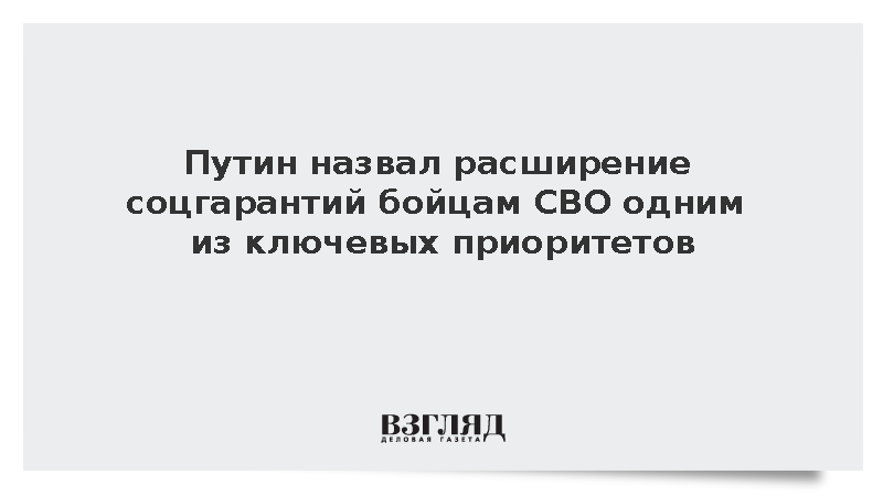 Президент России Владимир Путин на расширенном заседании коллегии Министерства обороны отметил, что государство ставит одним из приоритетов расширение социальных гарантий для бойцов специальной военной операции и их семей.
