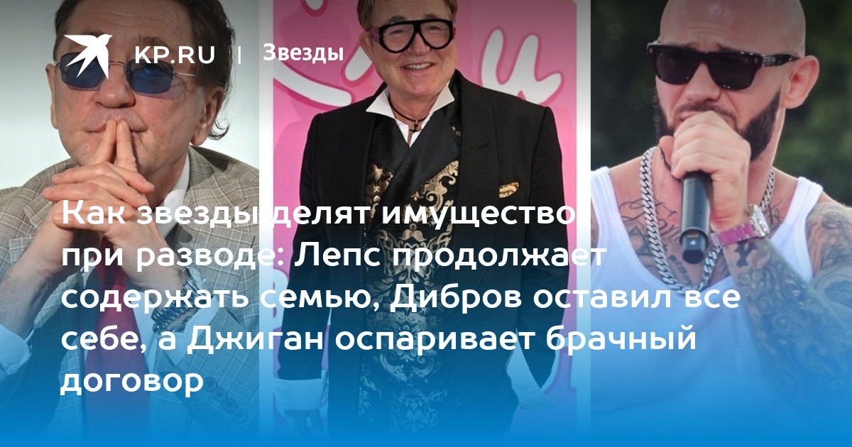Как звезды делят имущество при разводе: Лепс продолжает содержать семью, Дибров оставил все себе, а Джиган оспаривает брачный договор