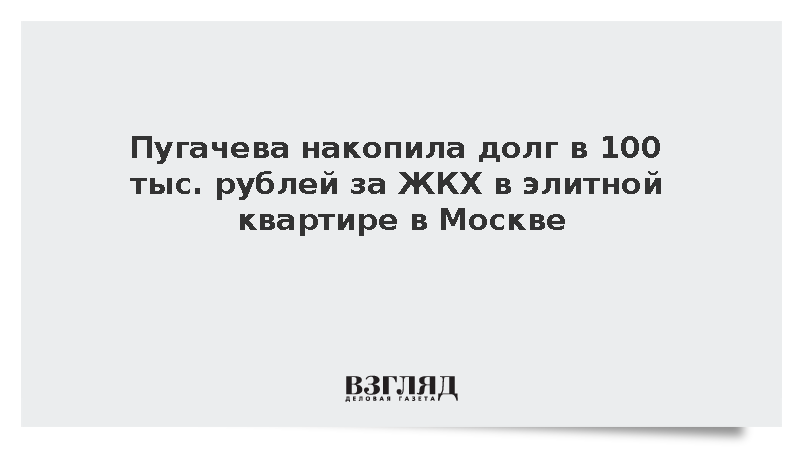 Пугачева накопила долг в 100 тыс. рублей за ЖКХ в элитной квартире в Москве